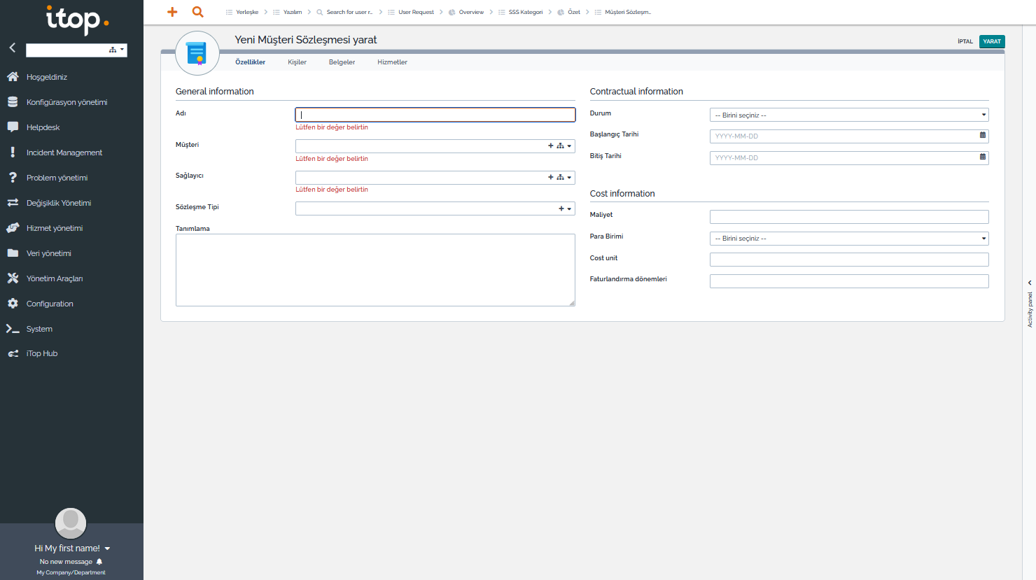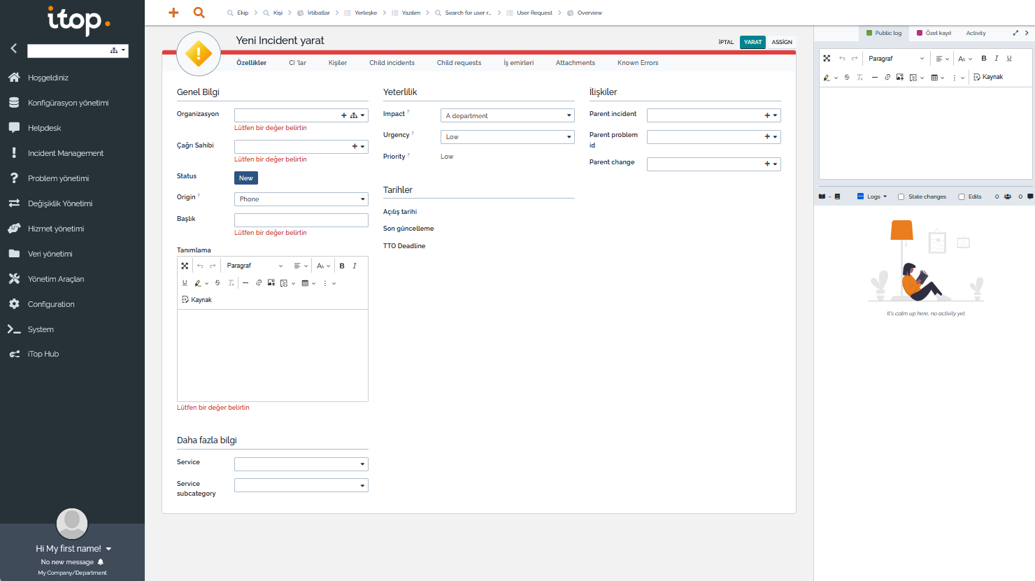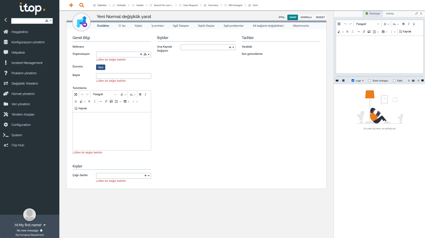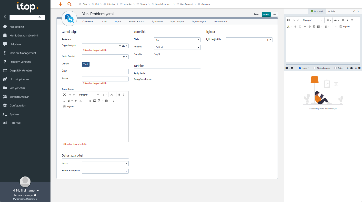 - BT ile ilgisi olsun olmasın, kullanıcılardan taleplerin toplanması ve bu taleplere istinaden iş yapılması süreçlerine ihtiyacı olan kişi ve kuruluşlar, Servis Kataloğu’nu ve CMDB veritabanını özelleştirerek bu ihtiyaçlarını karşılayabilirler.