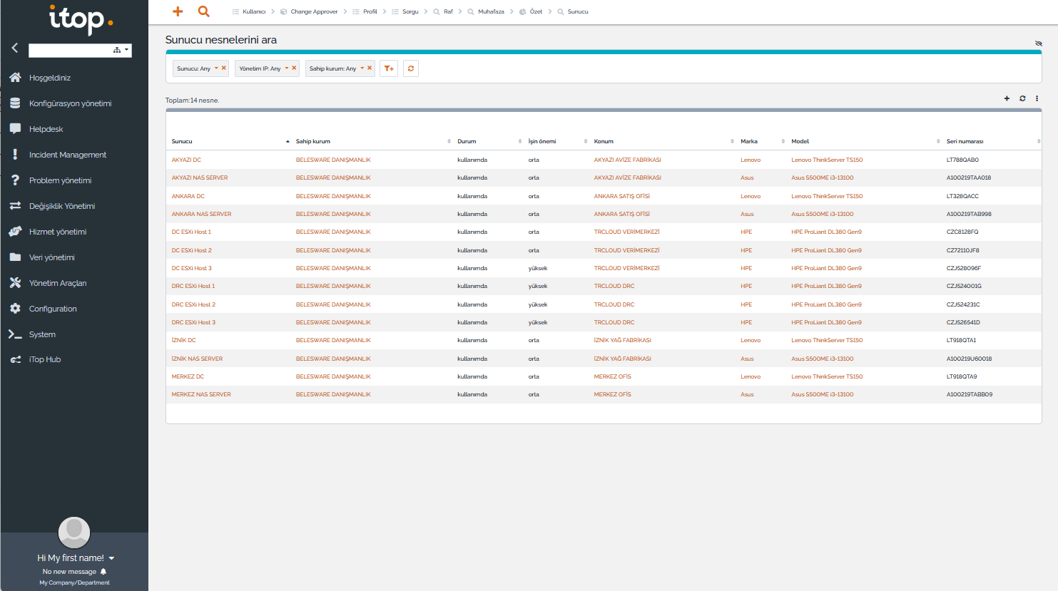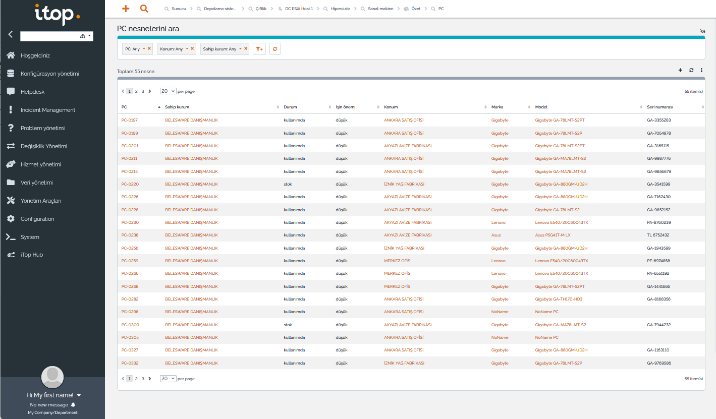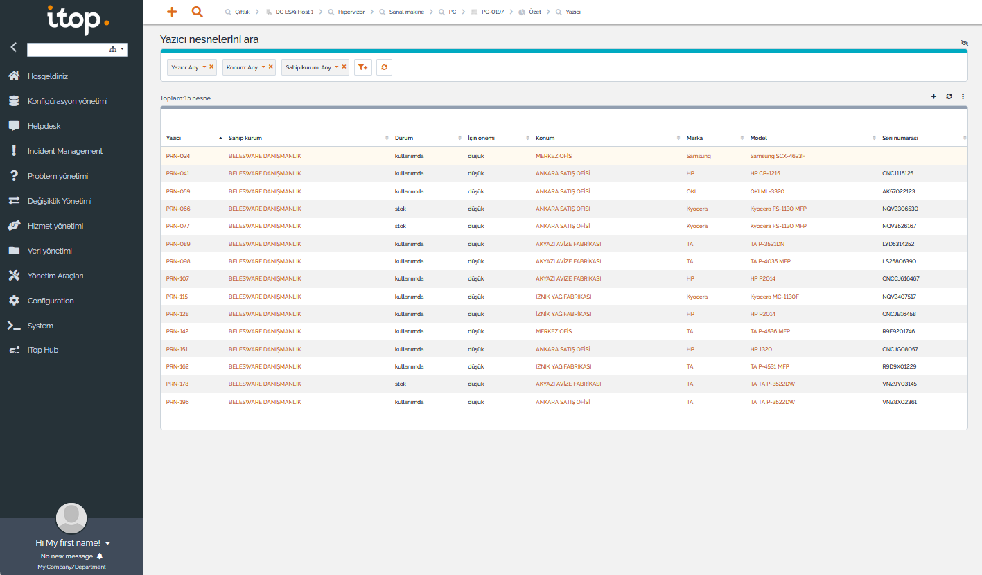 - Firmanın varlıkları (sunucular, bilgisayarlar, yazıcılar, ağ ve güvenlik cihazları, işletim sistemi lisansları, yazılım lisansları, …) envanter kayıtlarına işlenebilir, bu varlıklar kişilere bağlanabilir (zimmet kayıtları).